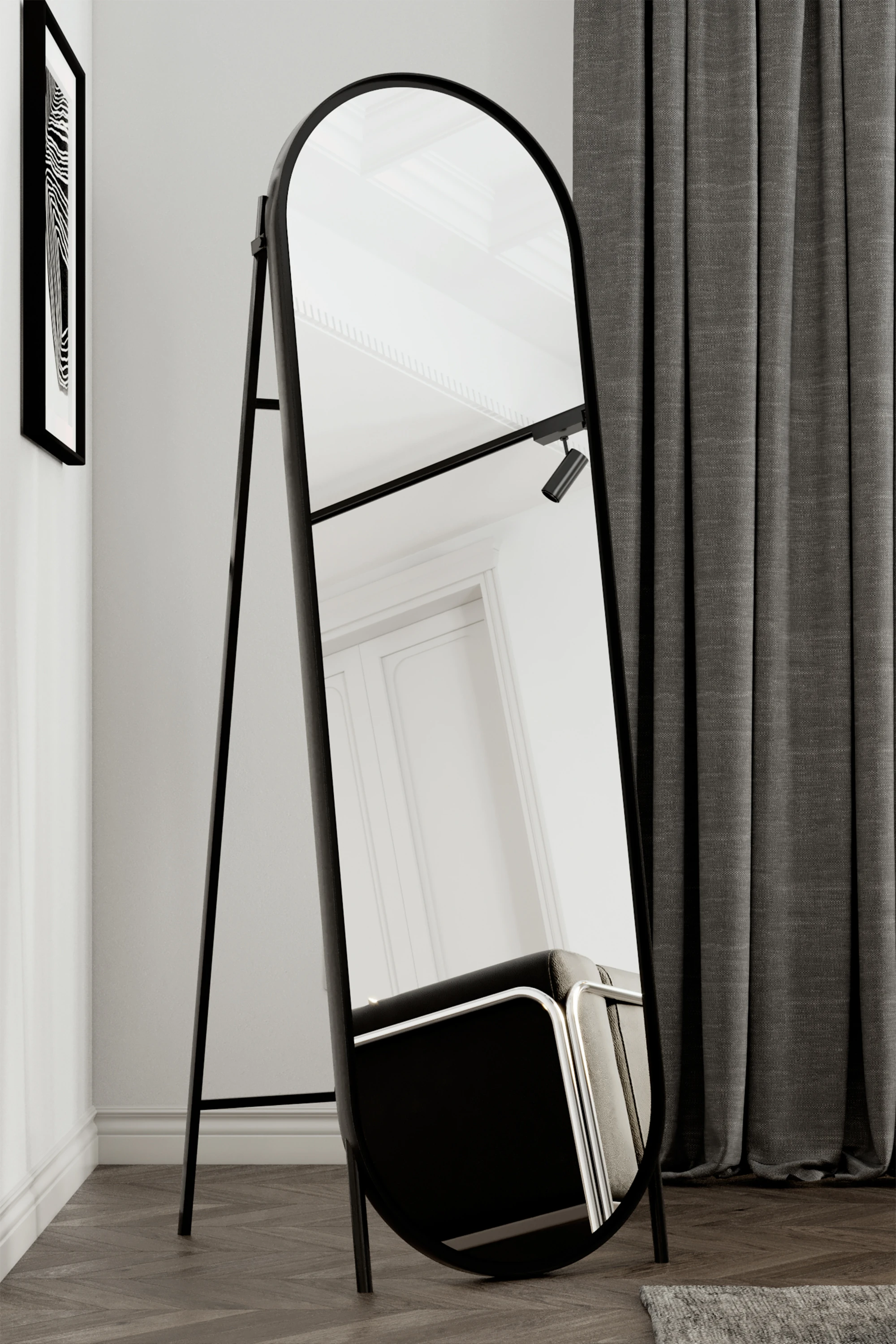Siyah Metal Çerçeveli Oval Ayaklı Boy Aynası 180 X 70 Cm